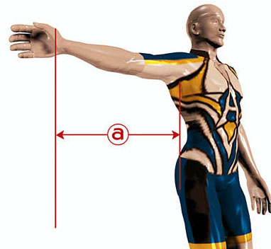 水平站立,平伸手臂、掌心向前,测量从虎口到肋骨所在平面的距离